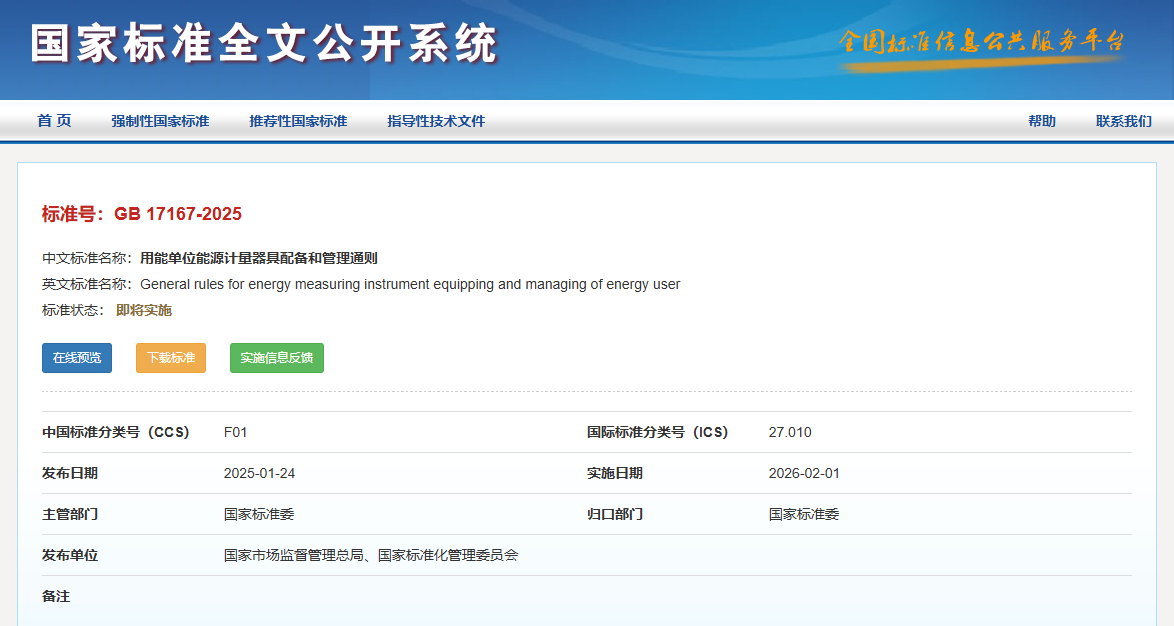 新修订的《用能单位能源计量器具配备和管理通则》将于2026年02月01日实施