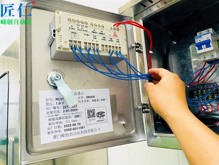 经过几次的沟通和磋商,加上给康师傅做能耗在线监测系统的服务商的极力推荐,最终促成了我们嵘创与康师傅加工厂的这次合作。最终,我们嵘创与之顺利签订合同。为了表示我们的诚意和重视,我们嵘创承诺,待流量计安装好后,我们嵘创团队免费负责现场的接线工作。很快,我们便如期供货。下面是我们嵘创团队在现场配合接线、调试时拍摄的照片,供大家欣赏: