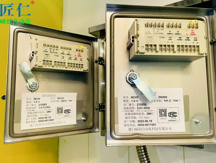 产线管道上分别安装嵘创DN125、DN200管径蒸汽流量计