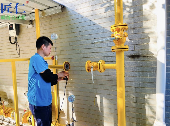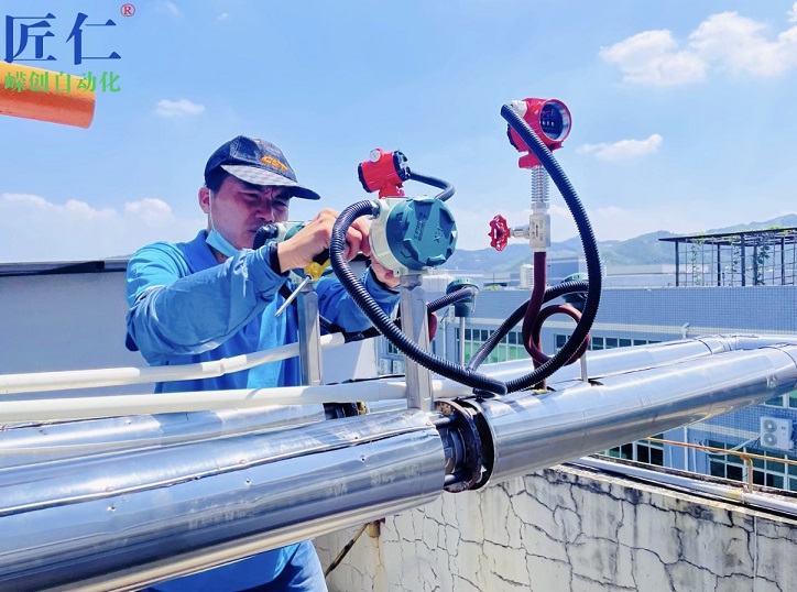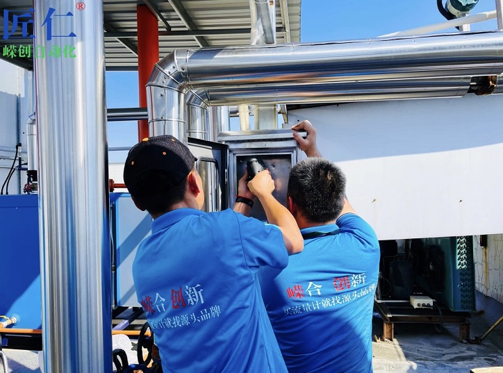 嵘创工作人员在固定蒸汽流量计配套的仪表箱
