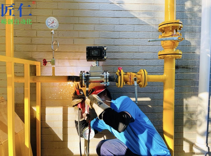 出于安全考虑,我们将要安装天然气流量计的这一段管道拆下来远离原管道焊接
